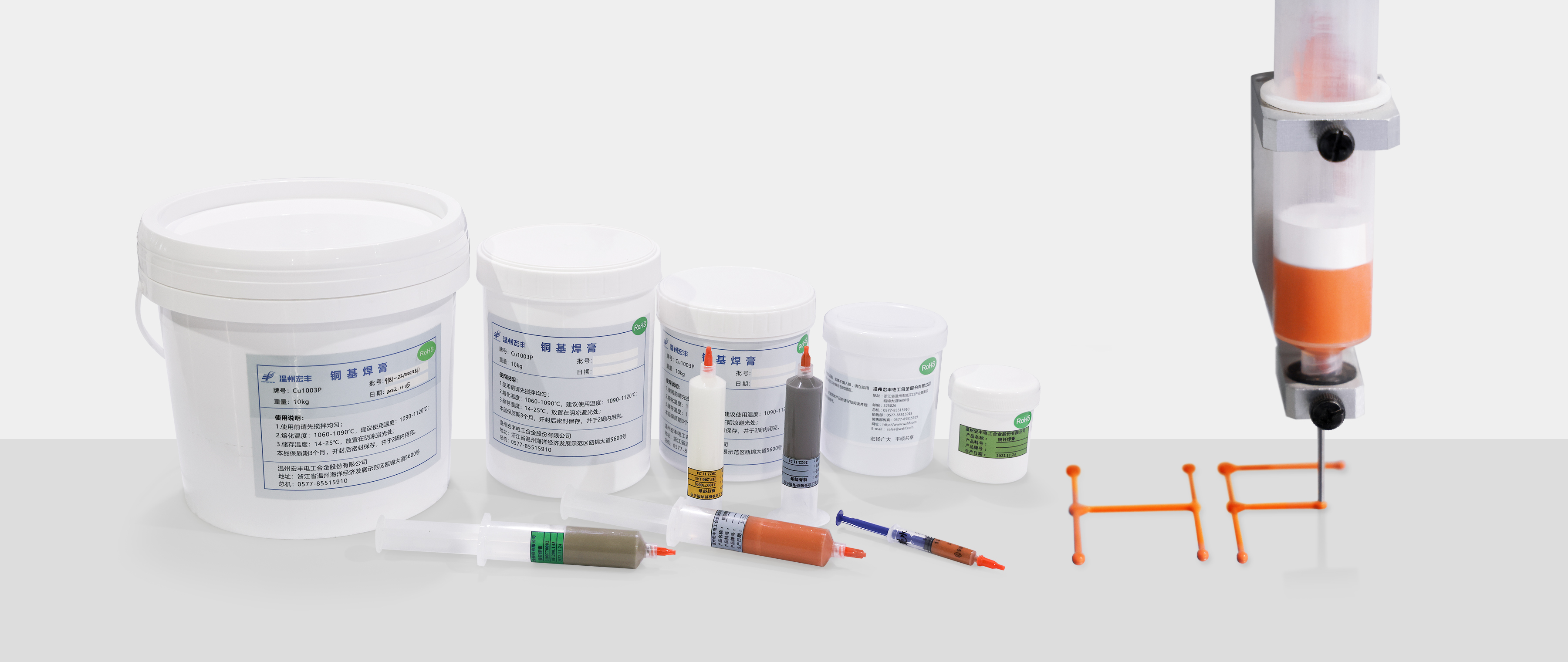 宏豐擁有自主研發的一系列焊膏,適用于各種條件的空氣釬焊(感應焊接、電阻焊接等)、真空釬焊等,主要包括銀基焊膏、銅基焊膏、鎳基焊膏、鋁基焊膏等。